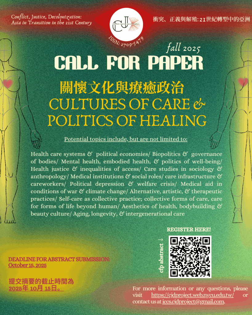 In the 2025 Spring Call for Paper, the topic of interest is “Cultures of Care and Politics of Healing”.In the wake of intersecting crises—war, political repression, pandemic, aging societies, economic downturns, environmental collapse, and global governance—the subjects of health and care emerge as urgent yet contested terrains. These crises not only affect bodies but also reverberate through the emotional, ethical, and spiritual dimensions of collective life.